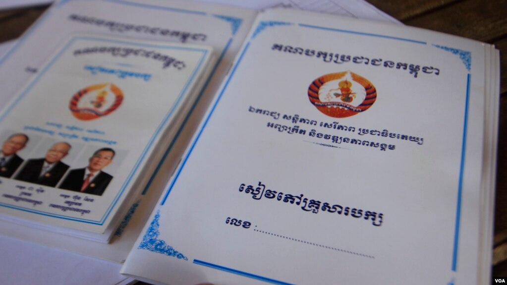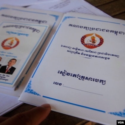 Here in this part of Kampong Chhnang province, the registration drive has seen village chiefs go door to door asking residents like Duch Thuon to register for a new document called a “CPP family book.”