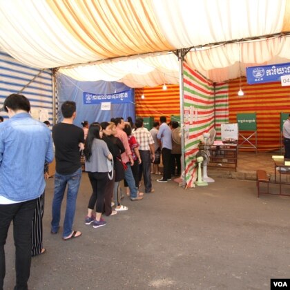 Cambodian citizens line up to vote on July 29, 2018 a polling station in Takmao town, Kandal Province. (Tum Malis | VOA Khmer)
