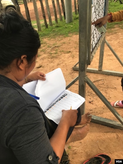 In Chi Kraeng district, Siem Reap province, a village official with a list makes note of who did or did not vote on July 29, 2019. (Thida Win | VOA Khmer)