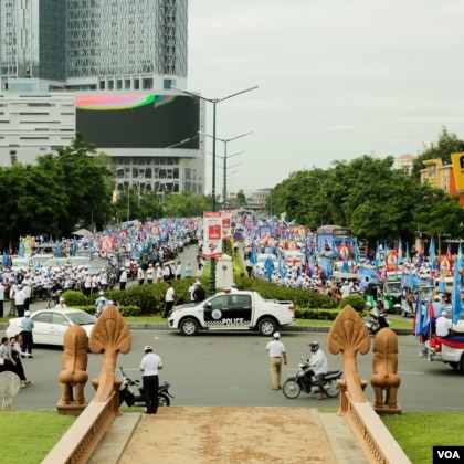 On the first day of campaigning for the July 29 elections, supporters of the ruling Cambodian People’s Party clogged Phnom Penh streets on July 7, 2018. (Ty Aulissa | VOA Khmer)