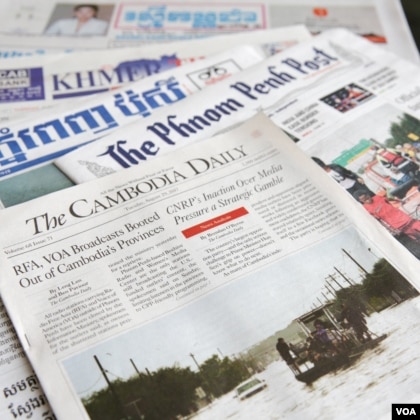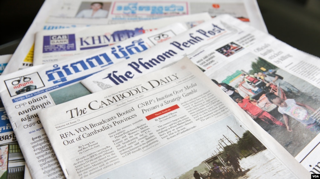 The Cambodian government’s suppression of Radio Free Asia and Voice of America broadcasts was front page news in The Cambodia Daily on August 29, 2017. (Hean Socheata | VOA Khmer)