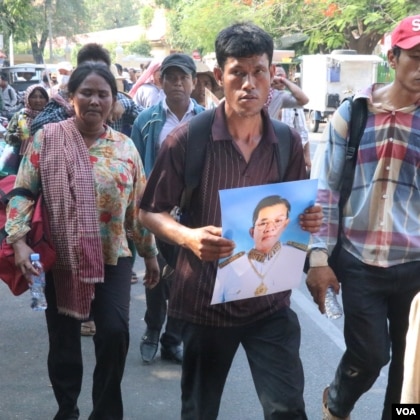 Hundreds of villagers from Kratie province protest over a land dispute case with a rubber plantation company, Phnom Penh, Cambodia, Apri 23, 2018. (Sun Narin | VOA Khmer)
